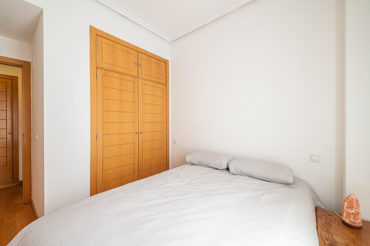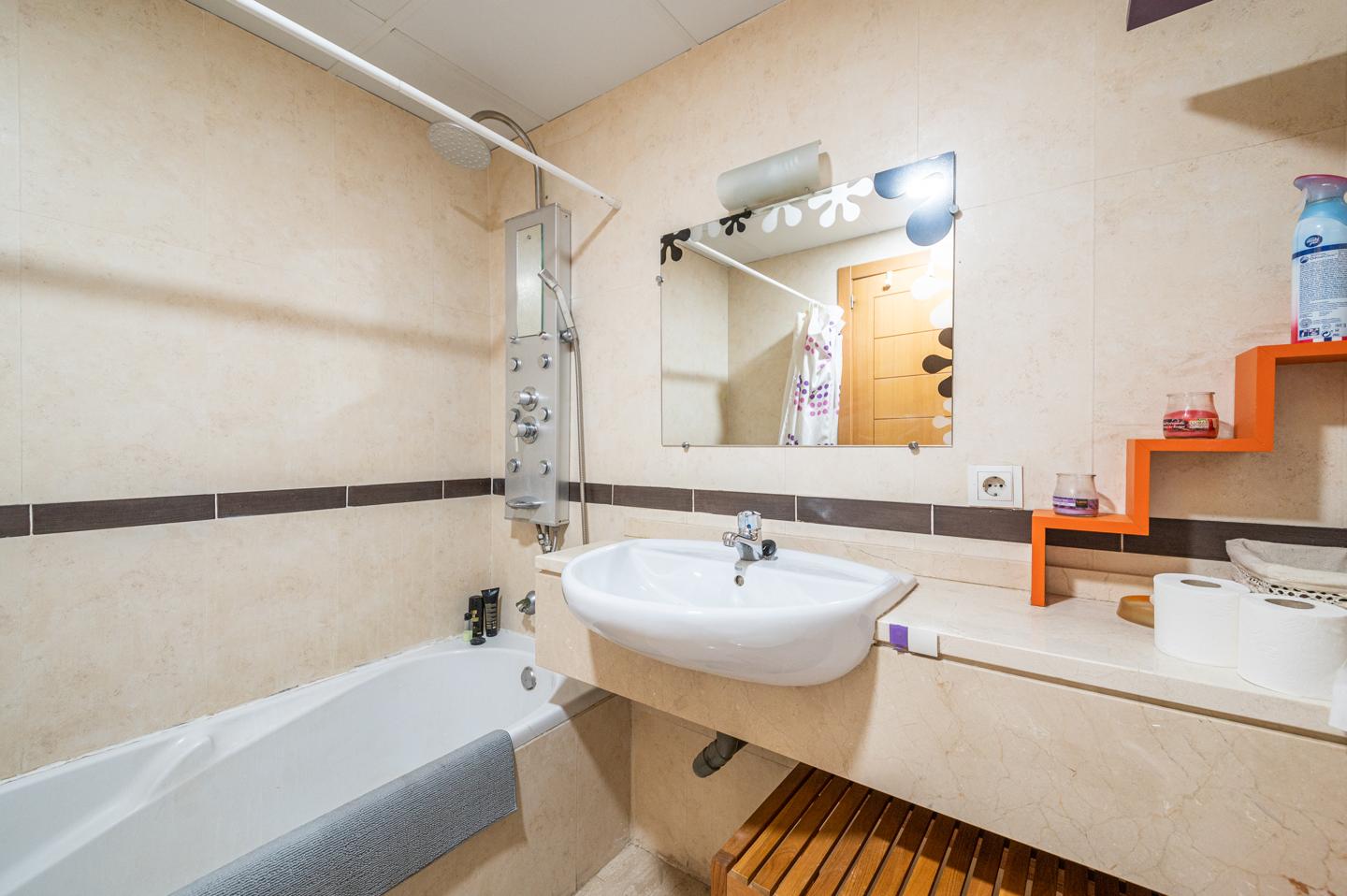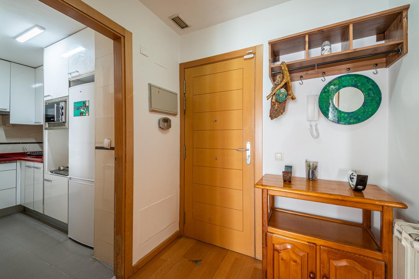 Leer másDesde el recibidor se accede a un amplio salón-comedor completamente amueblado. La cocina está equipada con electrodomésticos (nevera y microondas) y se conecta con el salón por una práctica ventana. La habitación principal tiene armario empotrado y estanterías. El baño es espacioso y dispone de bañera.