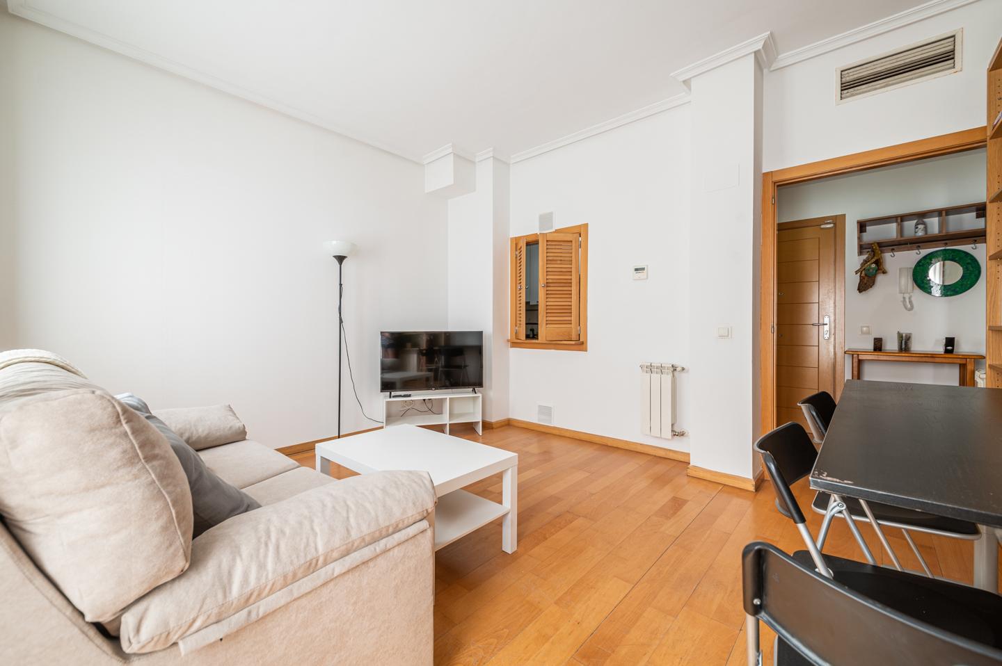 Vivienda amueblada y equipada, muy luminosa, ubicada en pleno centro de Madrid, en un edificio de reciente construcción. Cuenta con 43 m² distribuidos en salón comedor, 1 habitación, 1 baño y cocina.