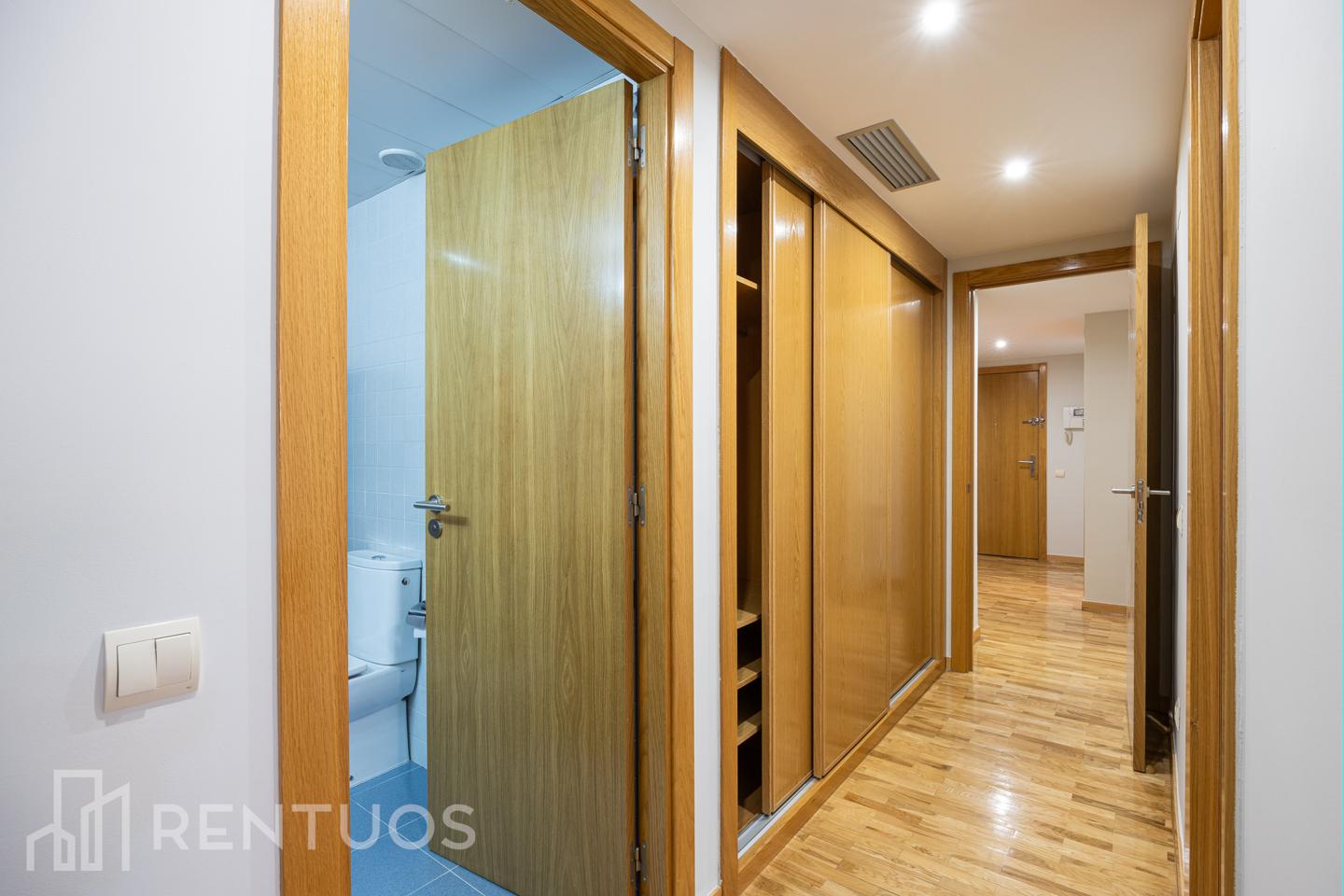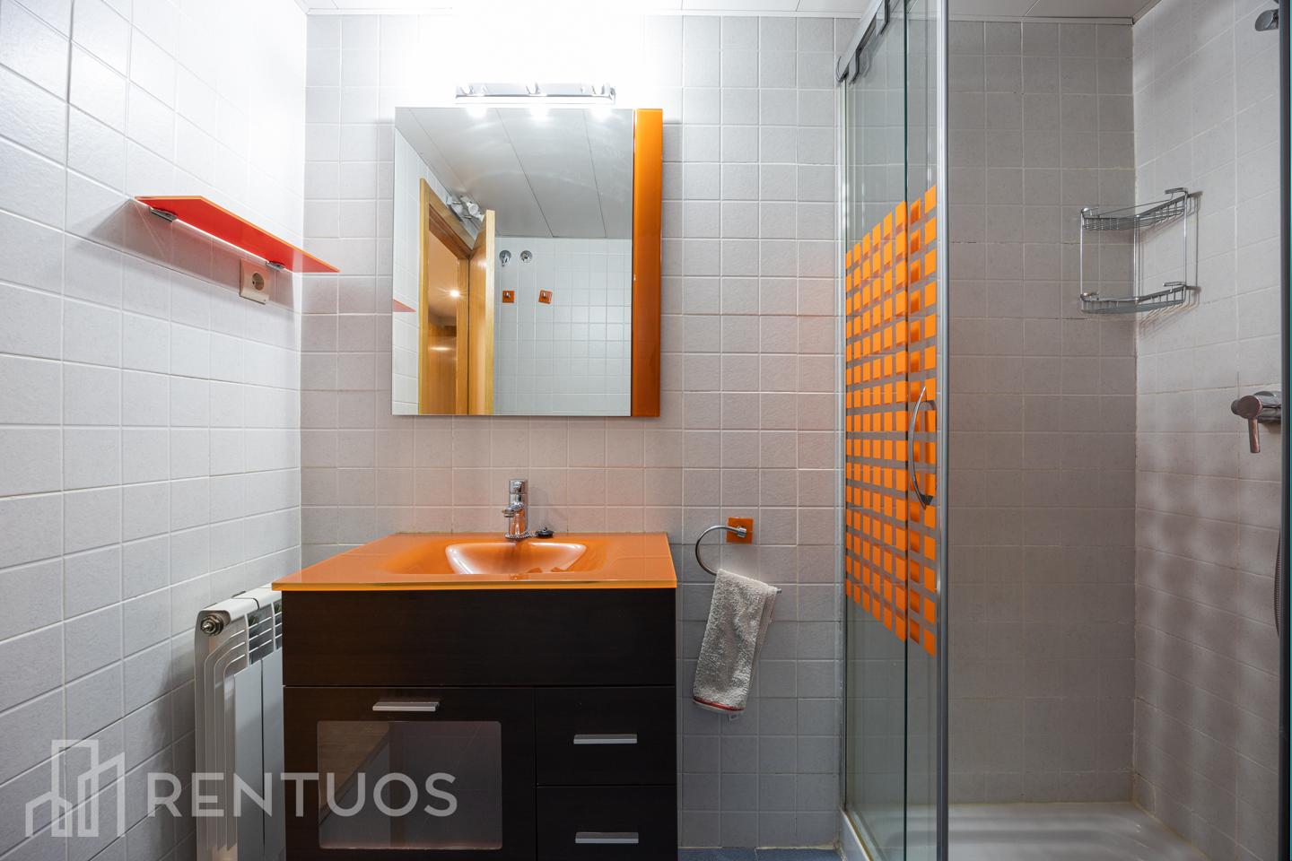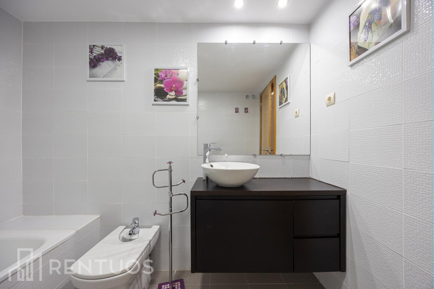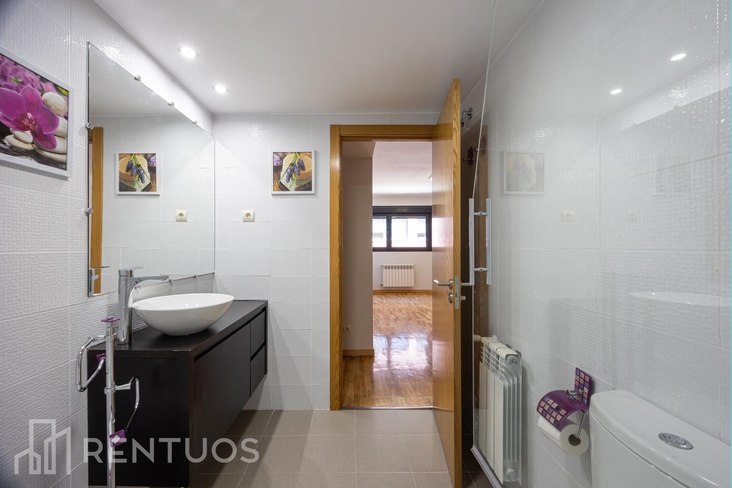 La habitación principal incluye un baño en suite con amplia bañera, garantizando privacidad y confort. El segundo baño, de estilo moderno, dispone de ducha y muebles de almacenaje.