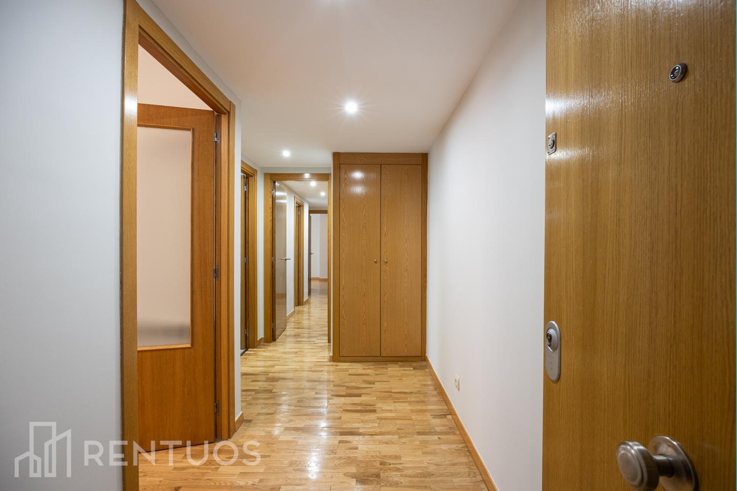 Situado en la primera planta de una urbanización tranquila, cuenta con 103m² distribuidos en tres habitaciones exteriores, todas con suelos de parqué y armarios empotrados.