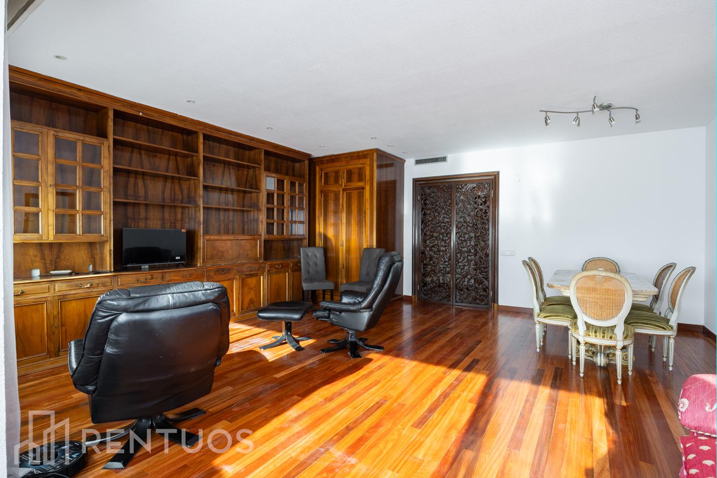 El salón-comedor ofrece un espacio generoso y versátil, con una gran biblioteca y salida a una pequeña terraza perfecta para tomar el aire. La cocina, totalmente...