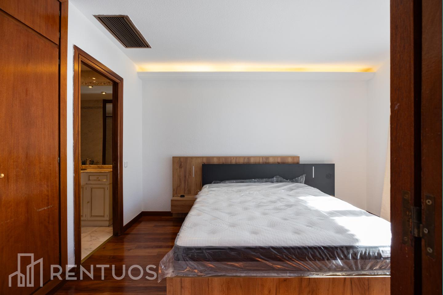 En quinta planta de una finca de calidad con conserje, esta vivienda reúne luz, tranquilidad y una distribución práctica. El dormitorio, amplio y con armarios empotrados, disfruta de un gran ventanal orientado al sur, lo que asegura una excelente entrada de sol. Incorpora baño en suite, aunque la casa cuenta con un segundo baño completo.