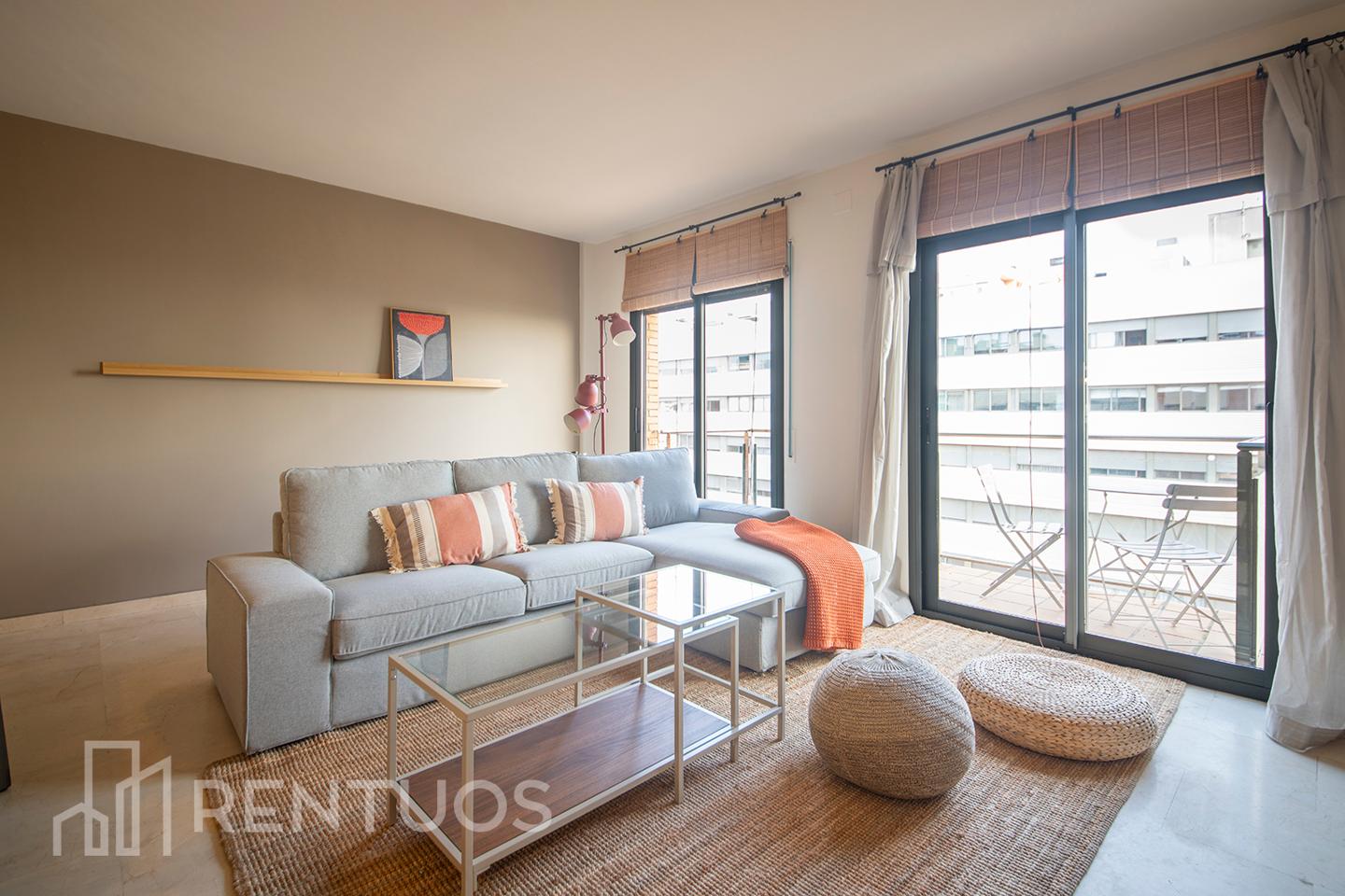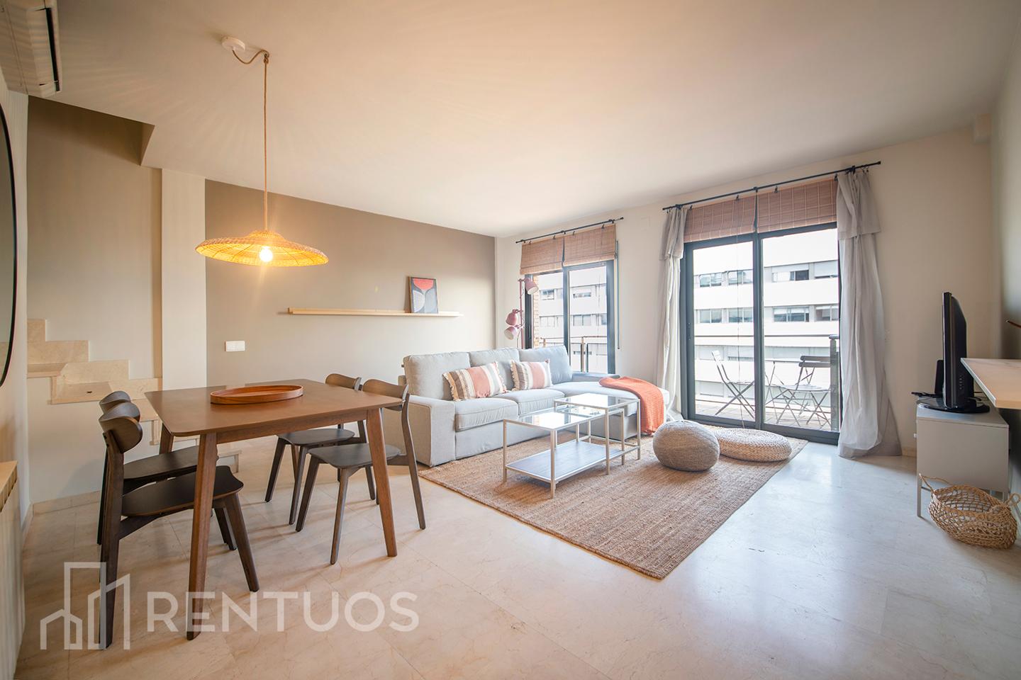 El salón, también con salida a la terraza, está amueblado con piezas de diseño que aportan un toque de distinción. La cocina, abierta al salón, está completamente equipada y dispone de una ventana...