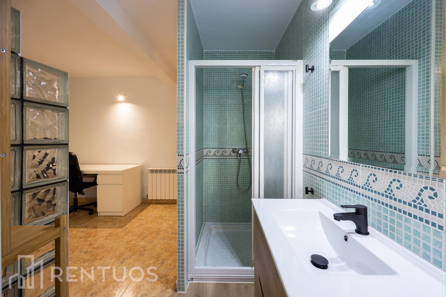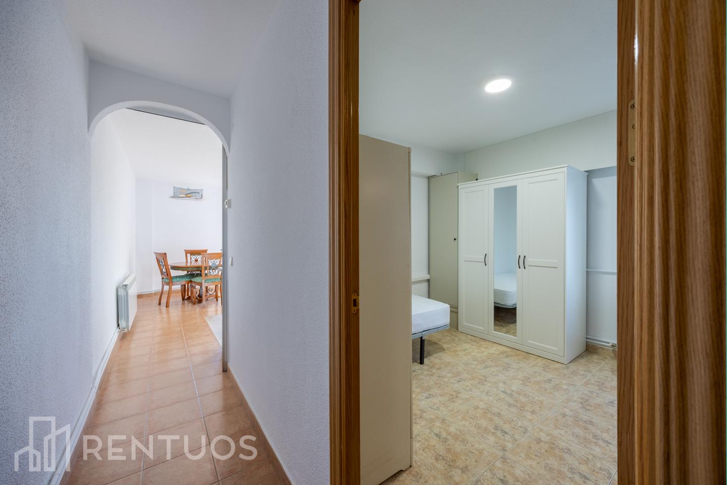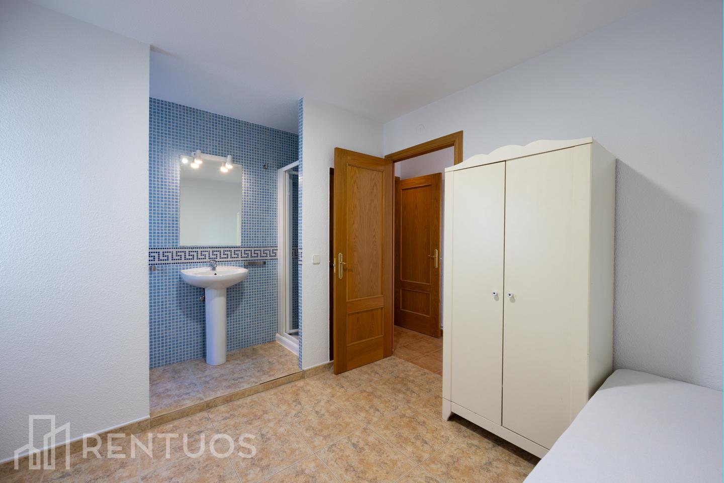 Ubicado en la tercera planta de un edificio con ascensor, el inmueble cuenta con dos habitaciones luminosas y completamente amuebladas, cada una con baño en suite. Un dormitorio dispone de cama de matrimonio, mientras que el otro está equipado con cama individual, mesa de estudio y estantería, creando un espacio perfecto para teletrabajar.