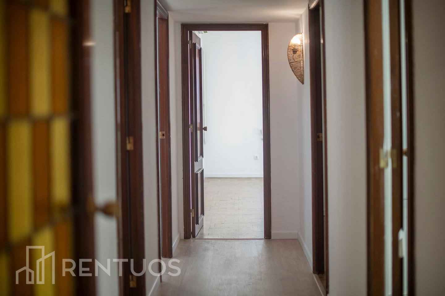 Ubicado en la sexta planta, esta luminosa vivienda ofrece una distribución óptima con cuatro habitaciones dobles, una de ellas tipo suite con aire acondicionado, baño, vestidor y balcón privado. Un segundo baño igualmente reformado aporta comodidad a todos los convivientes.