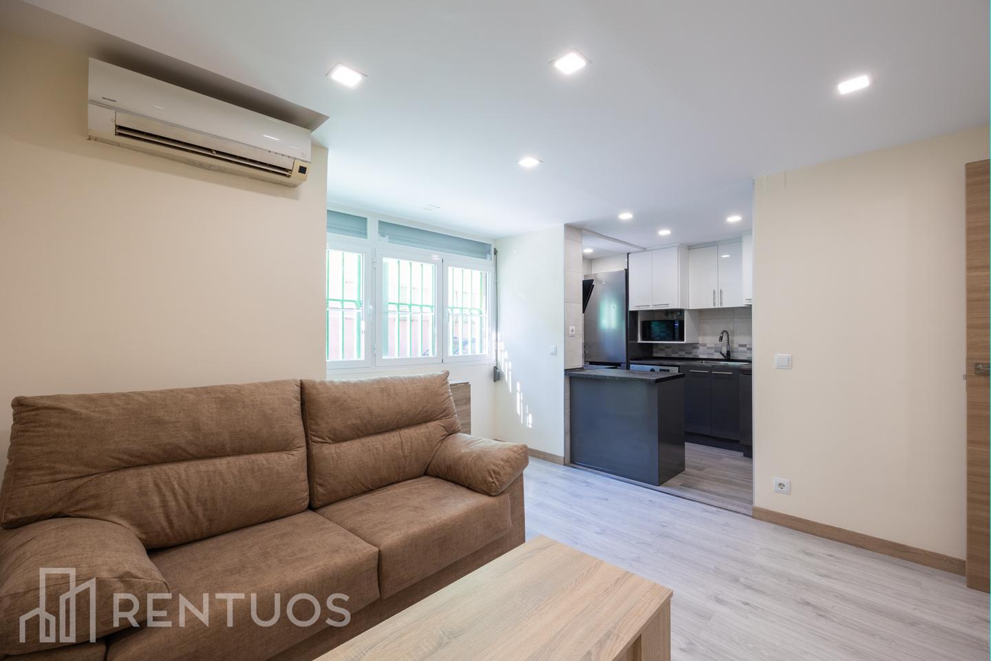 Descubre este encantador piso de 45 m² en planta baja, recién reformado y listo para entrar a vivir. La vivienda se distribuye en un salón moderno y acogedor, con suelo de tarima, aire acondicionado y una zona de comedor perfecta para disfrutar de tus comidas. La cocina, integrada en el salón, está completamente equipada con electrodomésticos nuevos, ofreciendo un espacio funcional y luminoso.