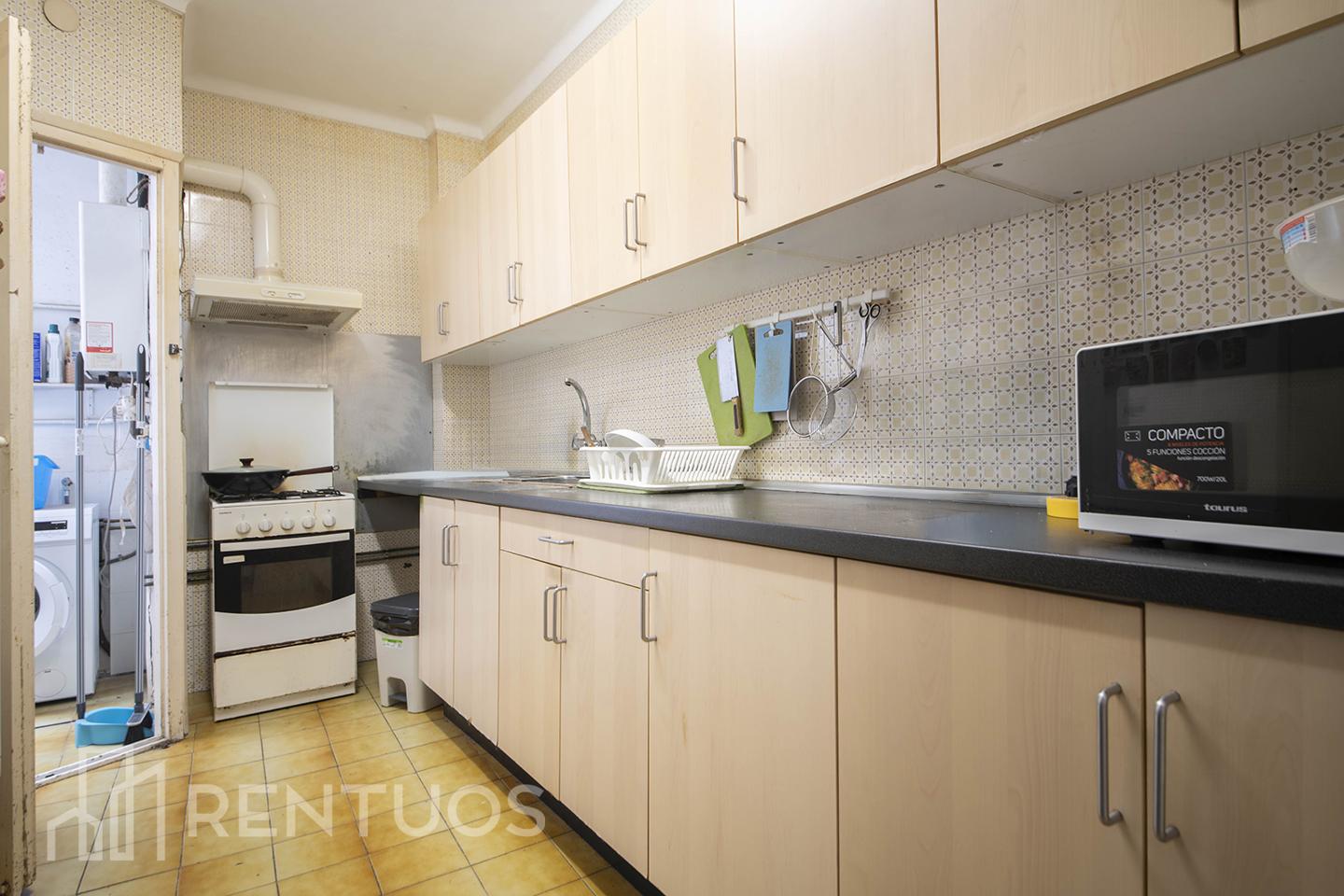 Esta vivienda, de 116m² construidos y 101m² útiles está actualmente distribuida en 5 dormitorios, 2 baños, una cocina con lavadero y un gran y luminoso salón de 17m² con terraza y orientación oeste con vistas a los jardines.